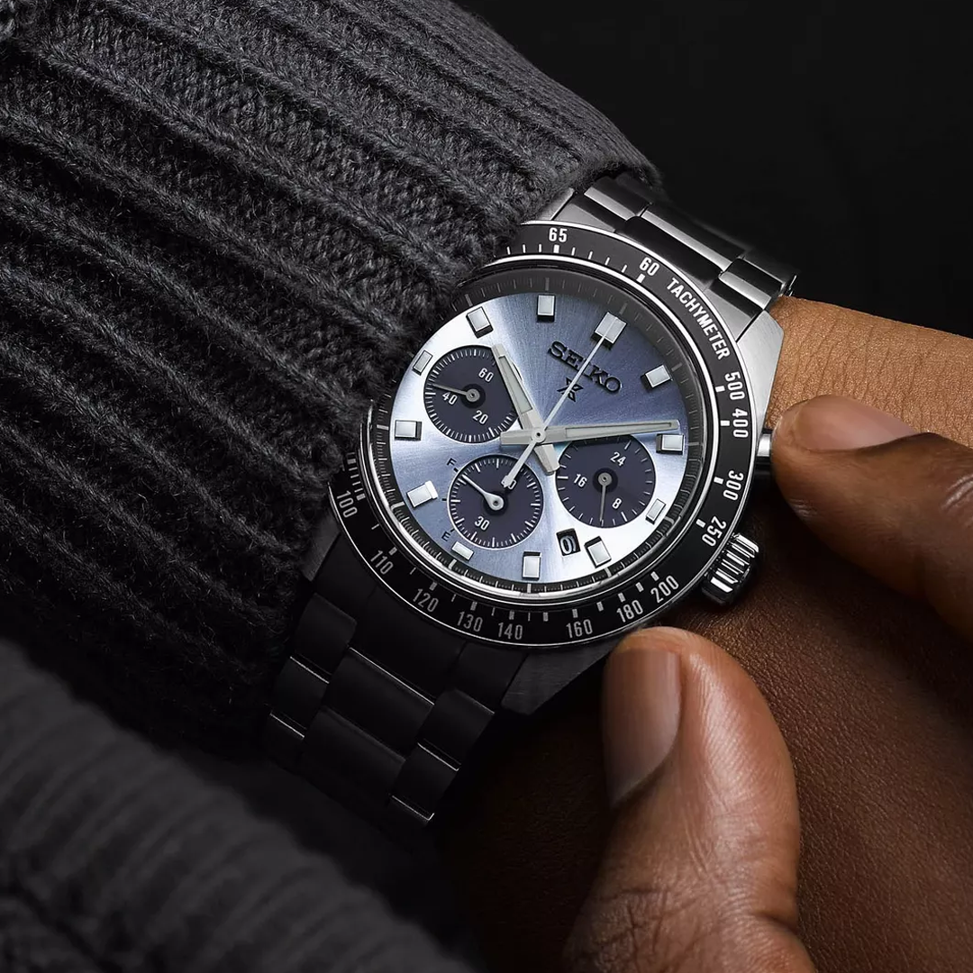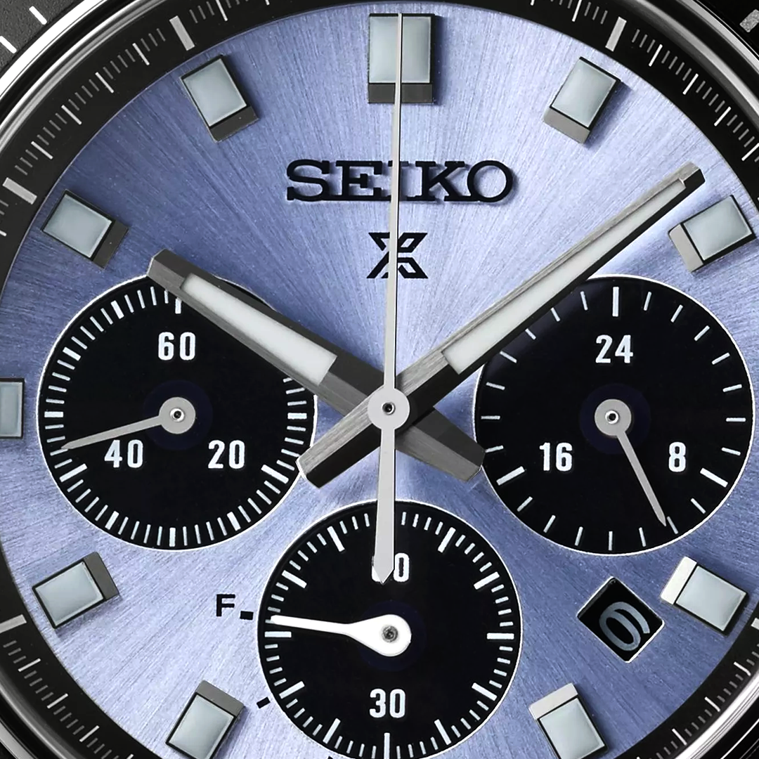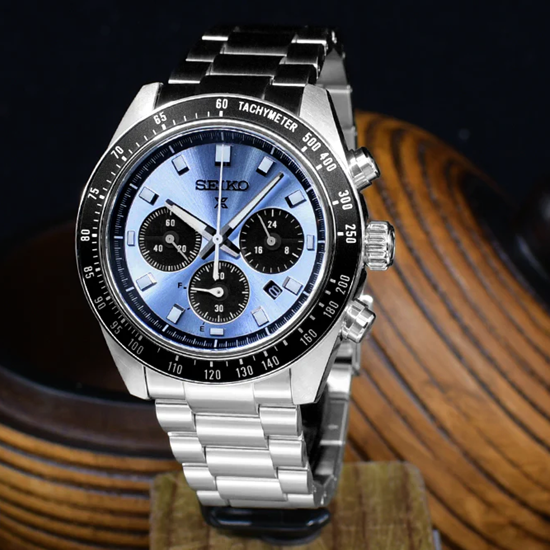 The Seiko SBDL109 (also known as SSC935) is a Solar-Powered ProspexSpeed timer chronograph featuring a V192 movement, an ice-blue panda dial, sapphire crystal, 100m water resistance, stainless steel case and bracelet, tachymeter, date display, and stopwatch function, characteristic of its JDM (Japan Domestic Market) "Iced Panda" design.